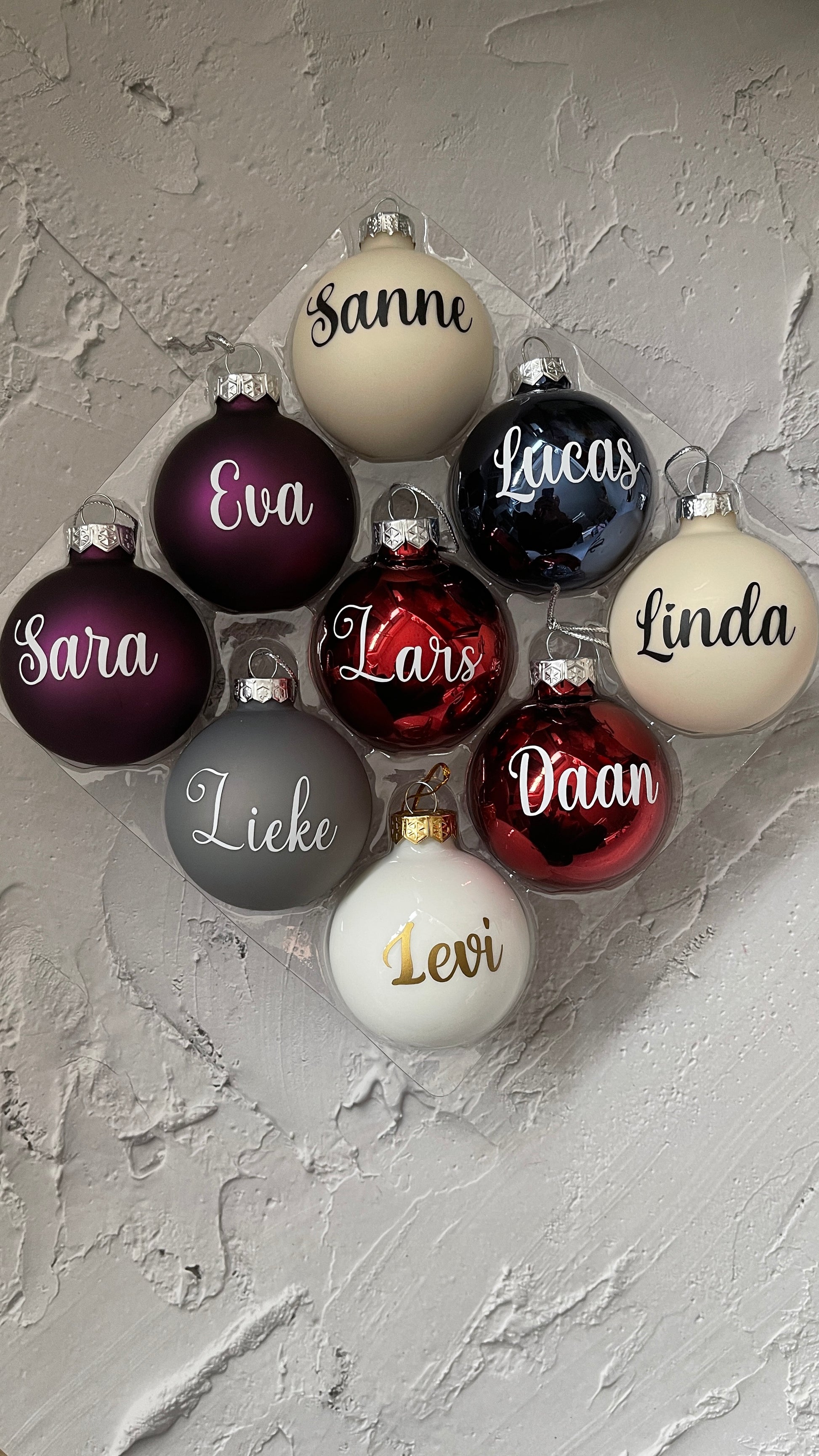 Boomversiering met deze gepersonaliseerde kerstballen? Een groot ja! Ze zullen schitteren in uw kerstboom! Elk glazen ornament kan worden gepersonaliseerd met elke naam.