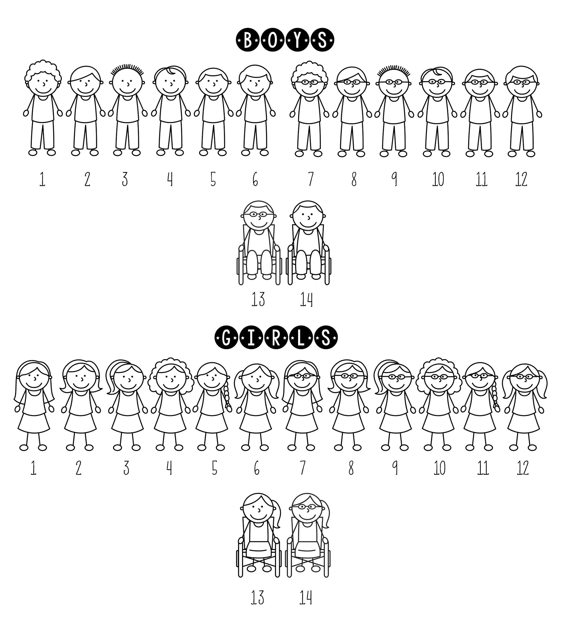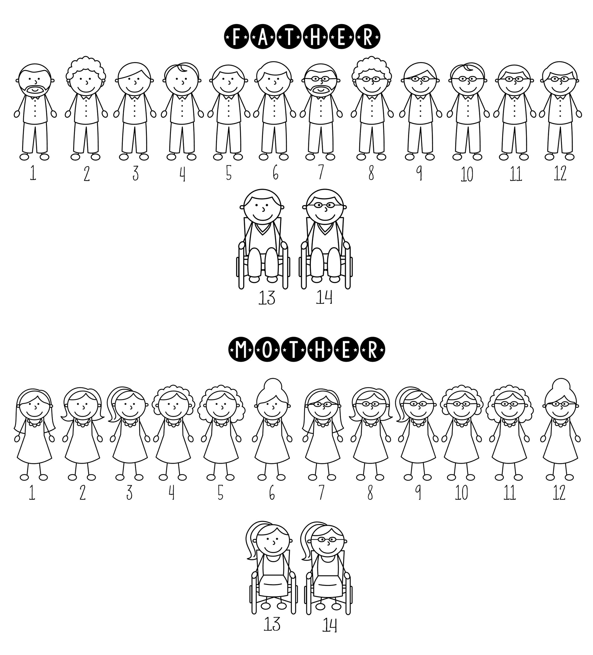 Selecteer de figuren die bij u passen en schrijf ze in het vakje. U kunt ook de leeftijd van de kinderen opgeven voor een correcte maat. Schrijf uw aangepaste gegevens bij het afrekenen.