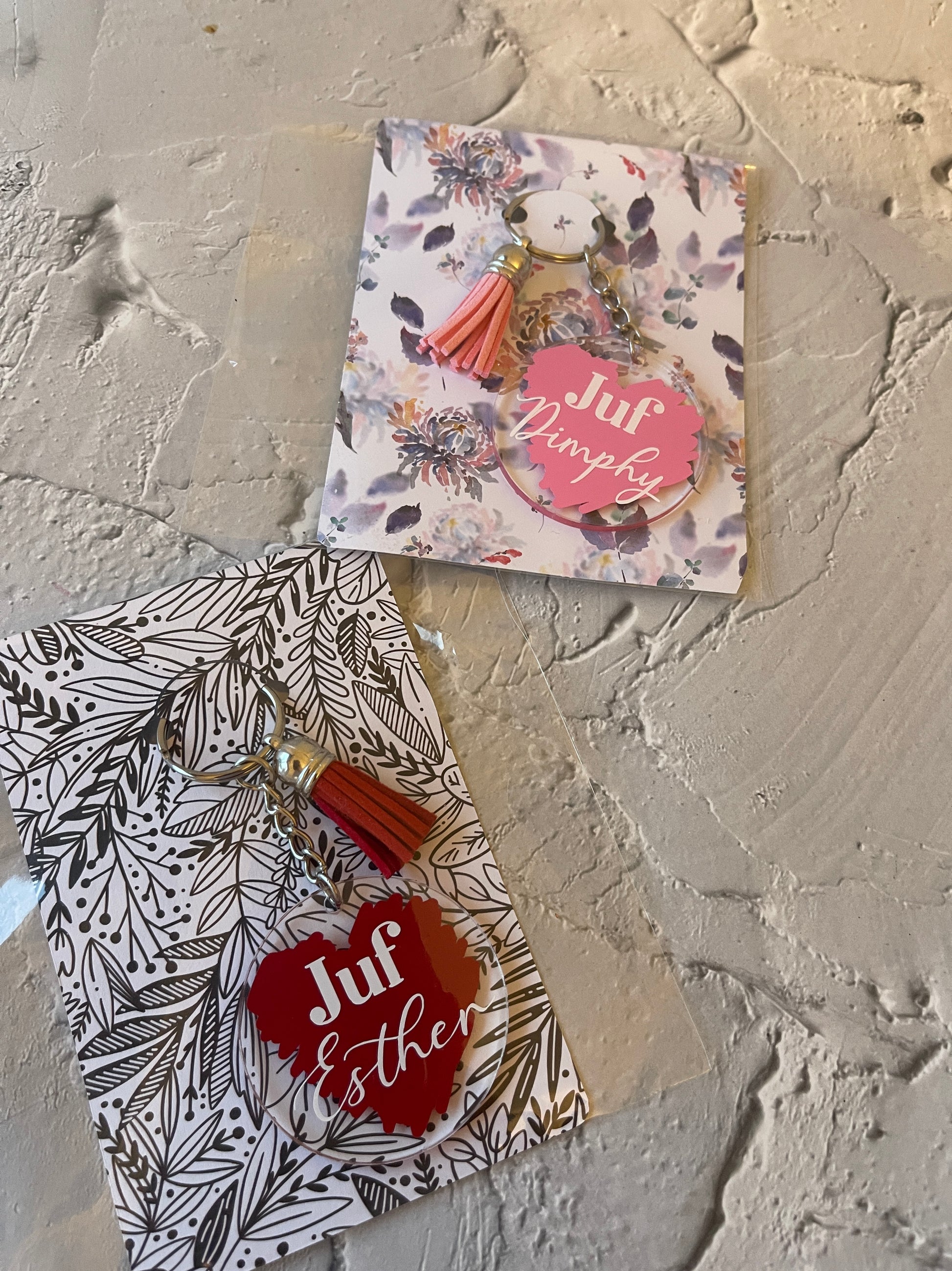 Een leuke handgemaakte sleutelhanger, om aan het einde van het schooljaar aan de juf of meester van uw kind te geven. Het is ook een perfect cadeau voor een dierbare vriend.