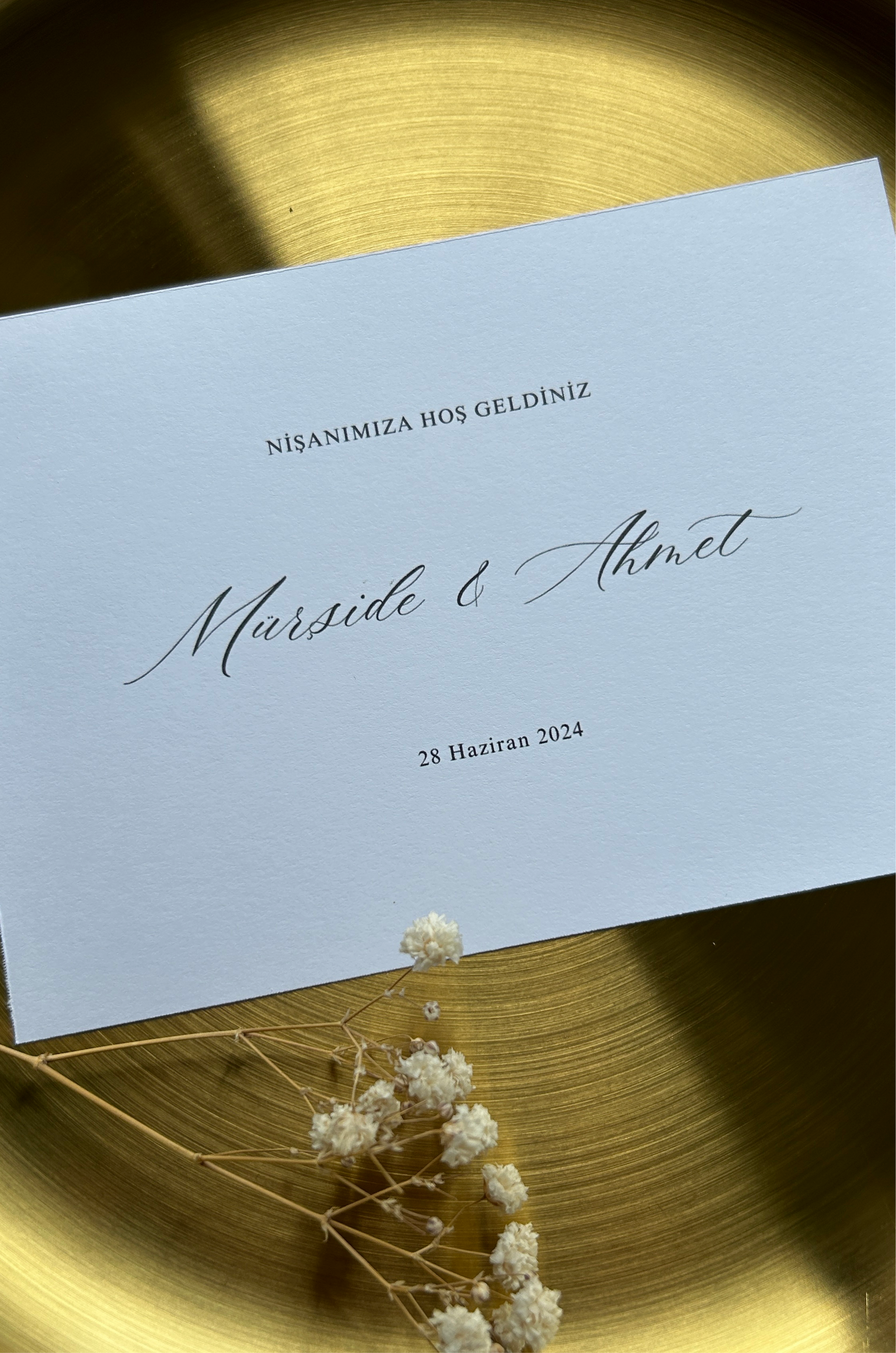 een minimalistische, hoogwaardige kaart die is ontworpen om uw evenementen te verbeteren. Met een eenvoudig maar elegant ontwerp is het perfect om gasten te verwelkomen op elke gelegenheid met een vleugje verfijning. Maak een blijvende eerste indruk met deze kaart