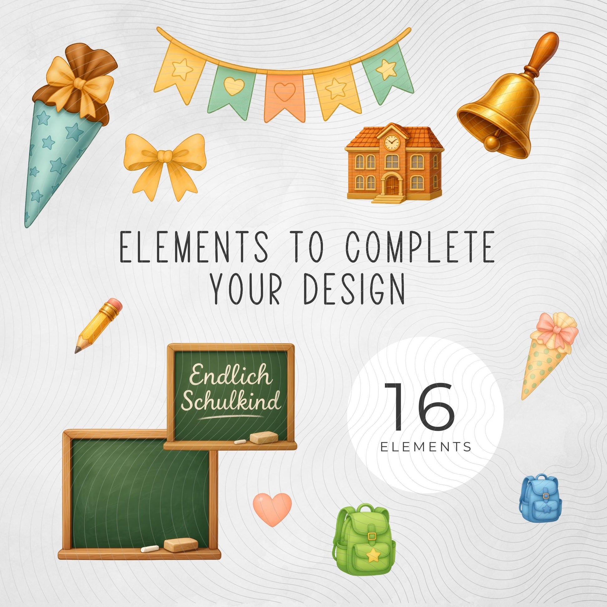 This charming digital clipart bundle honors the beloved German back-to-school tradition: the Schultüte (school cone). Featuring colorful illustrations of school cones, supplies, and cheerful Schulkind graphics, this set is perfect for creative projects, mug or tshirt printing, planners, scrapbooking, cards, and more!