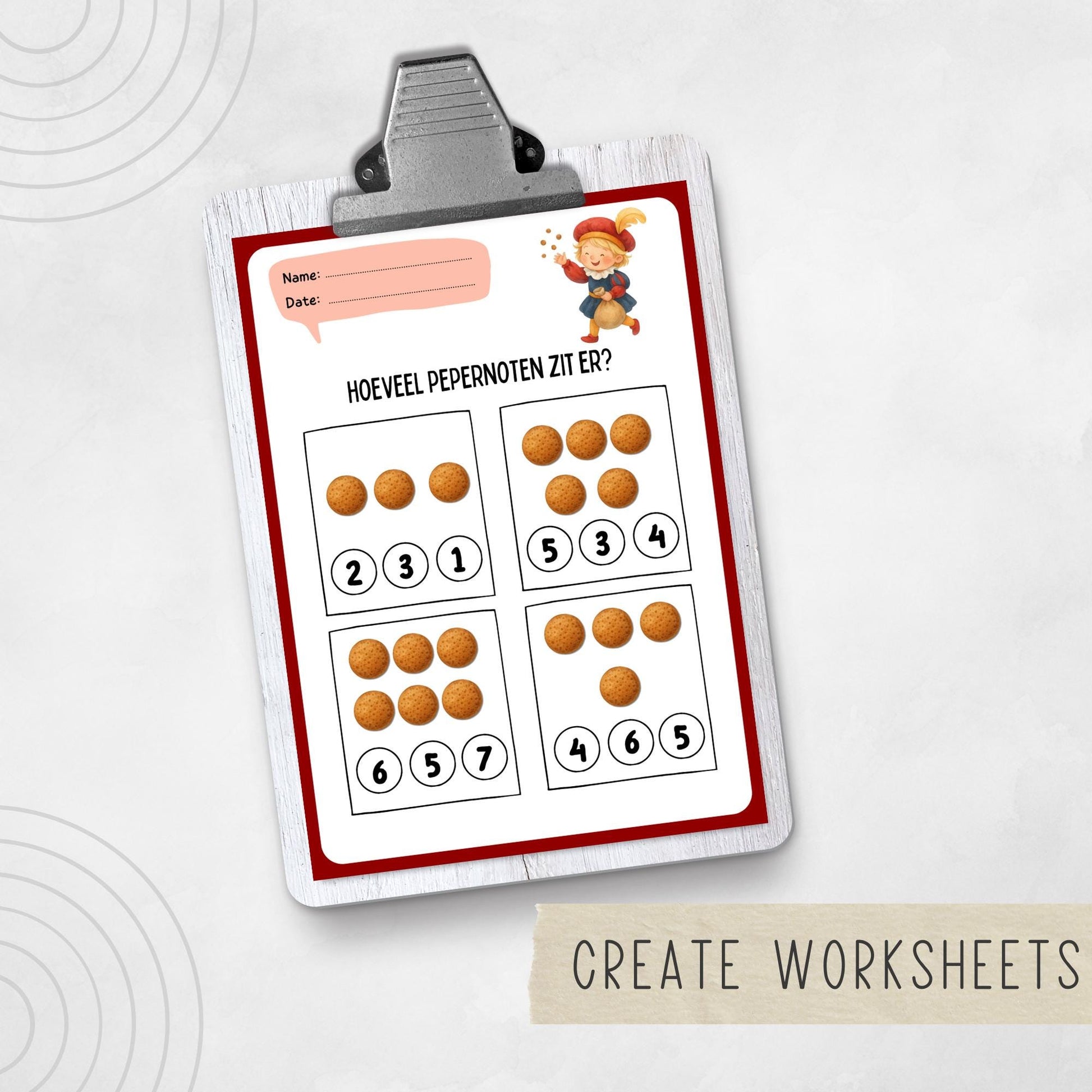 Holiday Treats: Speculaas cookies, Kruidnoten, Chocolate Letters, Apple, Carrot, Flour Bag, Apron, Gold Coin, Baking Tray, Rolling Pin